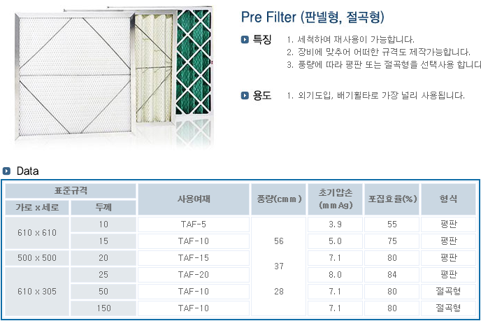 Pre Filter(판넬형,절곡형)
